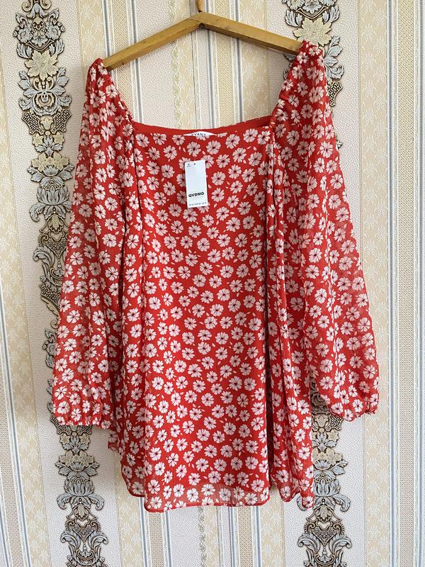 Стильна нарядна подовжена блуза, червона блузка туніка батал в квітах