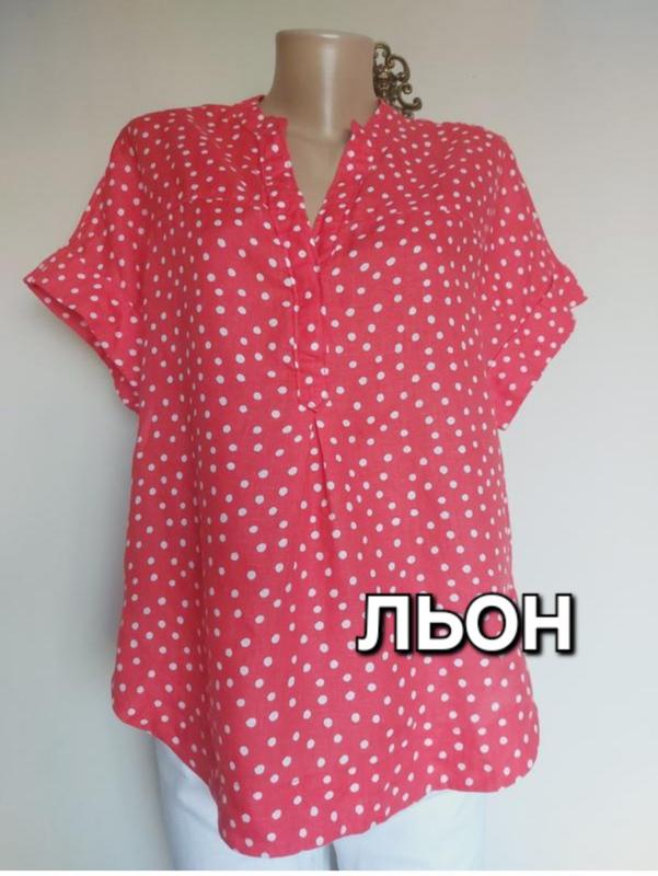🛑Отпрашиваю Новой/Укр-бытой по полной оплате мне на карточку. " Безопасная оплата" только Новой почтой 🛑 100% лен, средней плотности, качественный новая, без бумажных броков. цвет -коралловый в горох. модель вободная, оверсайз. размер 40/12,все замерчики и состав на фото