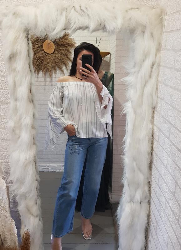 В очень красивом состоянии, невесомое, с интересными клиньями на рукавах. Плечи держатся на резинке. Длина 50 пог 54 ширина внизу 60 рукав 50 по дополнительной информации обратитесь.
