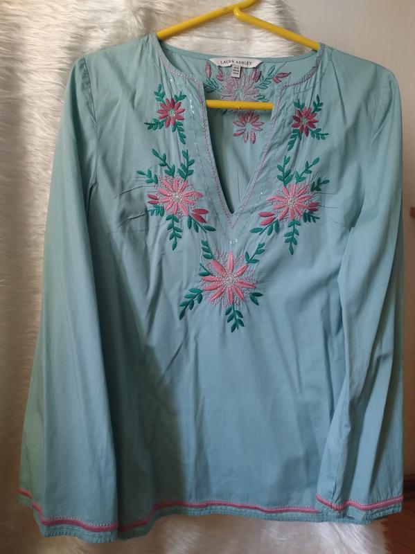 Длина - 65см., ширина - 44 см., рукав - 58 см. Цвет - аквамарин, бирюза. Материал - 100% хлопок, легкая ткань. Вышивка, пайетки, застежка-молния сбоку