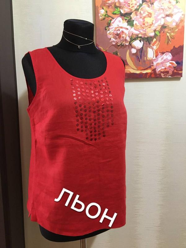 Яркая, фирменная, льняная блуза, качественная, легкая, комфортная, почти новая. Плечи 35см, ПОГ 52, ПОТ 51, низ 57, длина 65см.
