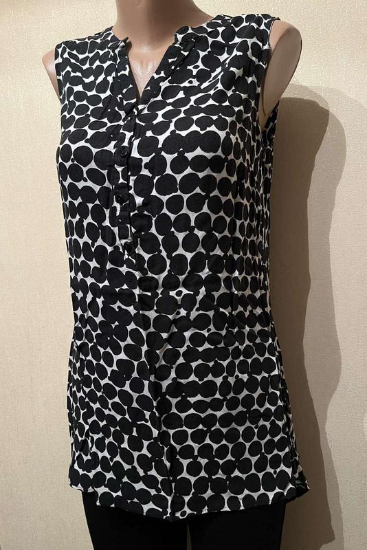 Блузка в горох модель такая сзади идёт чуть длиннее . Размер М 44-46