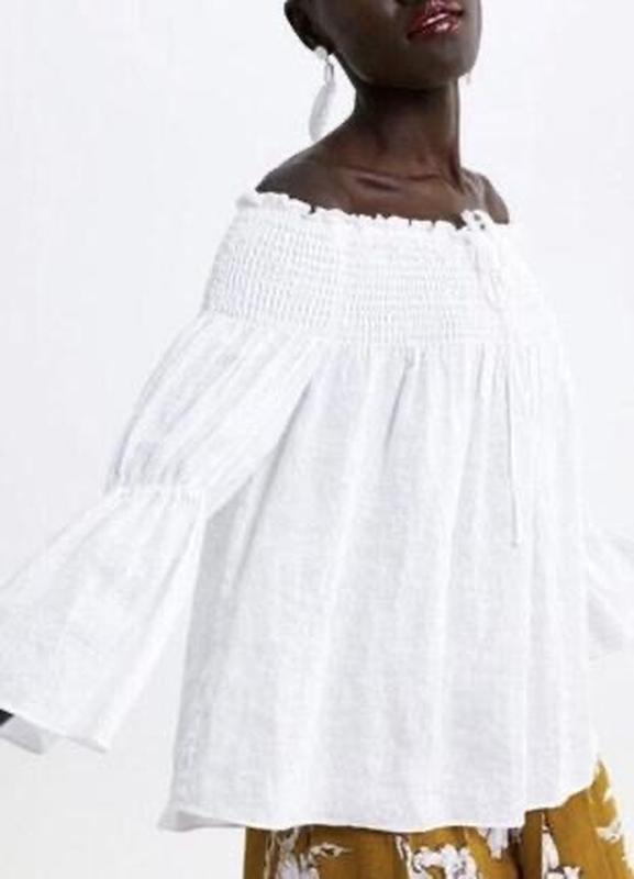 Лляний топ блузка з відкритими плечима Розмір S, також можна на М Довжина 53, рукав 48