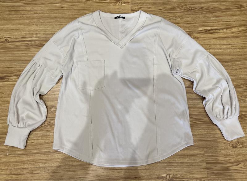 Нова красива блуза з красивими пишними рукавами колір молочний, тканина така як велюр дуже мʼяка і ніжна. Довжина по спині 68 см довжина рукава від шиї 74 см під мишками 60 см дуже гарно тягнеться