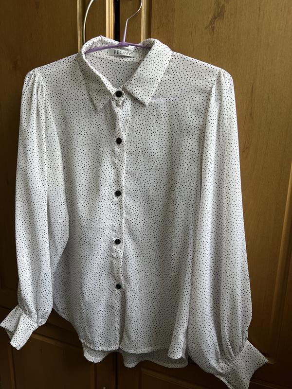 Блузка вільного крою з широкими рукавами. Напівпрозора, приємна до тіла. Без дефектів, всі ґудзики на місці. Підійде на розмір xs-m