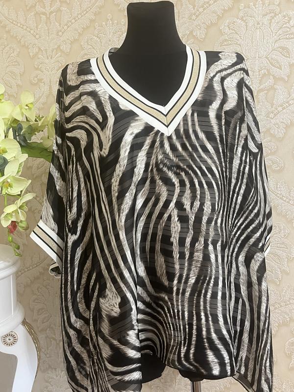 Длина -72 Ног-95 по верхнему блузе Низ майки тянеться Цвет черный с беж И золотистая нить