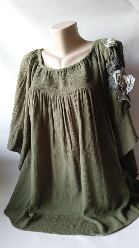 блуза с вышивкой,цвет зеленый болотный как на фото,вискоза жатка