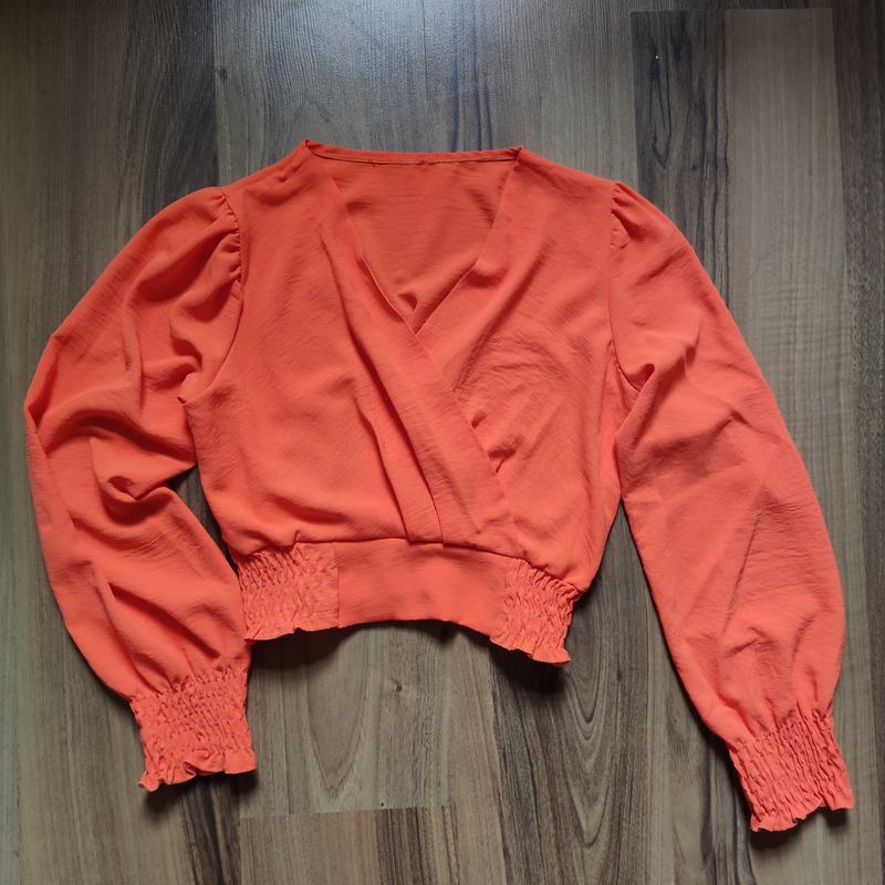 Блуза укорочена. Размер S. длина 38 см, полуобхват груди 46 см. рукав 54 см на резинке. низ на резинке.