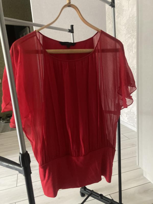 червона блуза, під брюки , спідницю, як в офіс так і на свято, колір більш до вишневого, не такий яскравий як на фото🌝 Подвійний шар тканини , повітряний верх і приталений еластичний низ підкресліть талію і підтримає животик Розмір 16 наш довж від плеча 65 рук від горл 27 пог 51 тягнеться до 65( блуза на еластичній підкладці майка) пот 43-55