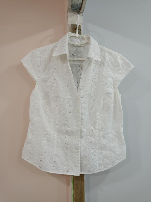 Белая блузка из прошвы. Пог 49 см, пот 44 см, поб 50 см, длина 57 см