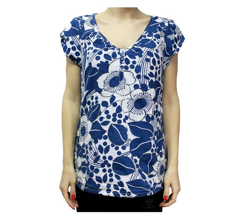 Летняя натуральная хлопковая блуза Next (100% коттон) синяя с белым в цветочный принт. Блуза внизу затягивается на кулиску. Цветы расшиты деревянными бусинками. Размер XL Плечи 39-40 см, длина рукава 10 см, бицепс 23,5 см (половина), ПОГ 54-55 см, ПОБ 62-63 см (можно стянуть кулиской), длина от плеча 64 см, вырез 24,5 см