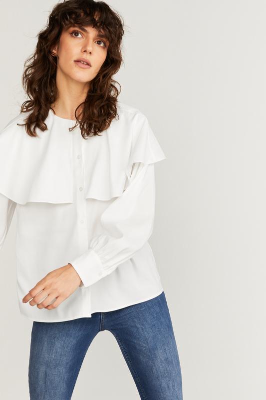 Блузка-кейп Sophia від Stockh lm Studio - це ткана блузка з великою декоративною накидкою на плечі. Круглий виріз горловини та ряд ґудзиків спереду. Об'ємні рукави та пройми із застібкою на ґудзики. Без нюансів По бірці розмір Л, повномірна Довжина від плеча - 68 Довжина кейпу - 30 Плечі - 42 Рукав - 62 ПО під пахвами - 58 ПО низ - 64 Пересилаю після оплати на картку зручною для вас службою доставки.
