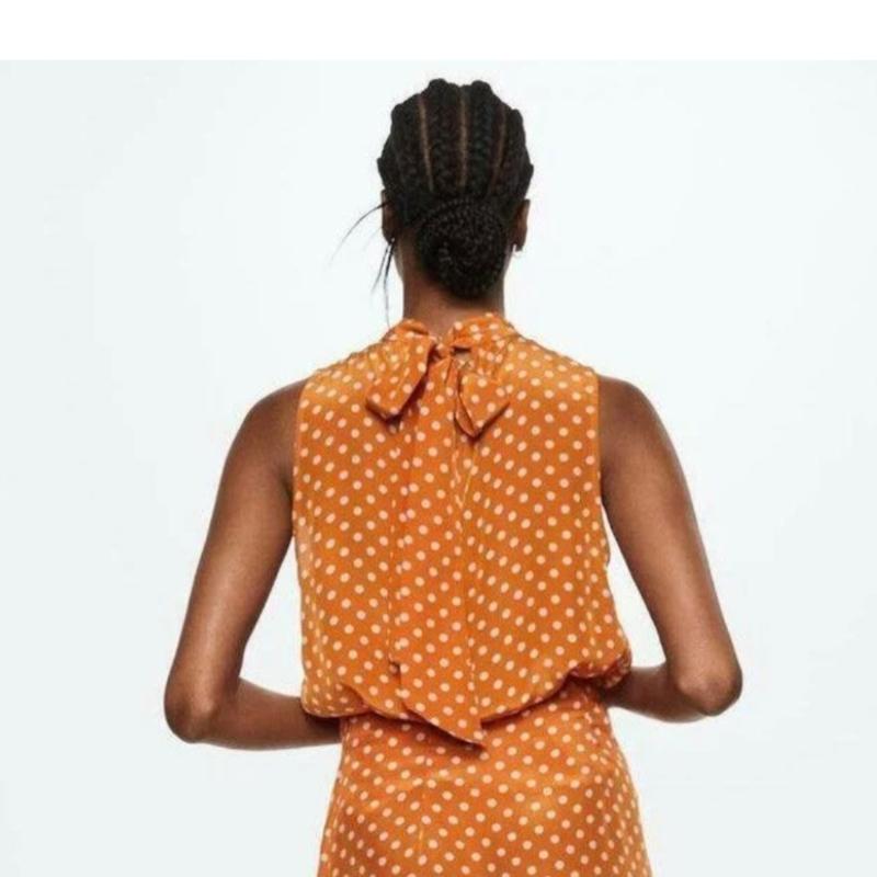 Невесомая блуза в горошек известного испанского бренда. Размер S (36), свободный крой. На шее завязывается на бант. Сток, без етикетки. Дополнительные фото/замеры на запрос.