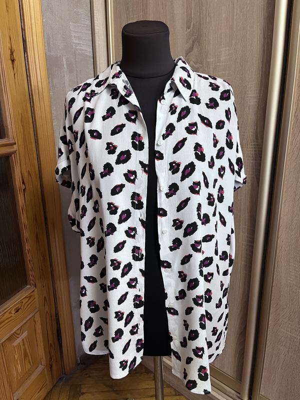 Блуза літня зі спущеним рукавом, який гарно приховує недоліки передпліччя. Літній леопардовий принт. Стан нової речі. 100% віскоза Довжина спереду 60 Довжина ззаду 71 Напів обʼєм грудей 56