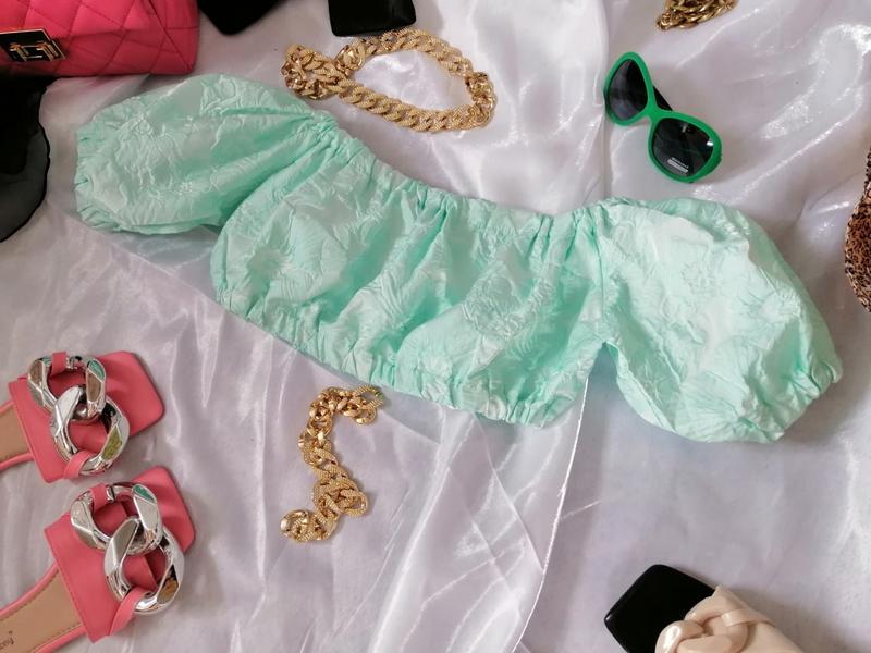 Самый красивый жаккардовый топ блуза с пышными объемными рукавами бафф из жаккарда отлично держит форму подойдут на размер XS M полуобхват груди 42 см тянется на 58 см ширина полотна топа 19 см все на резиночках отлично тянется допускаю погрешность измерения плюс-минус 1 см является безопасная оплата с обзором товара на поште безопасной оплатой присылаю по почте Мист Экспресс