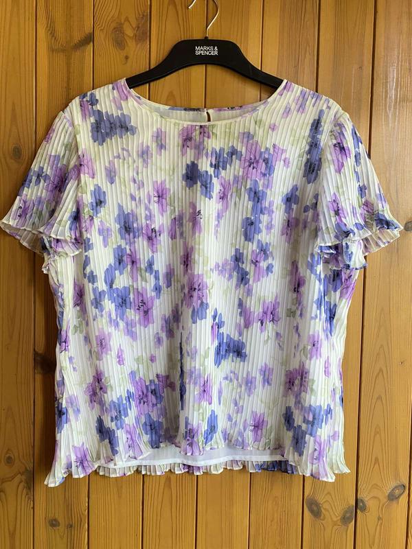 Блуза женская в маленькое плиссе,размер 18,полуобъем груди 54 см, длина 63 см,100% полиэстер.Стан отличный,е запасной пуговица.