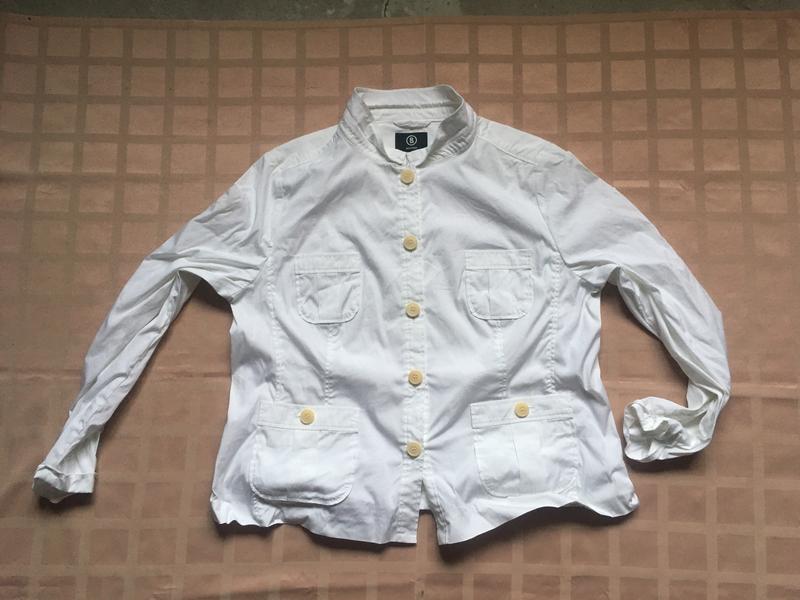 Продам оригинальный легкий жакет от элитного немецкого бренда Bogner. Модель в стиле «сафари» с воротником-стойкой и накладными карманами. Отличный вариант для лета и теплой весны. Состав: 82% хлопок (Baumwolle), 16% полиамид, 2% эластан. Ткань дорогая, плотная, отлично держит форму и приятна к телу. Размер: указан 46 (европейский), наш 52-54 (XXL). Состояние: отличное, без дефектов, пятен и зацепок. Белоснежный цвет. Детали: брендированная фурнитура (пуговицы), четыре функциональных кармана, идеальные швы. Артикул модели: 1060-163 (RN 54190 / CA 41062 — подтверждение оригинальности).