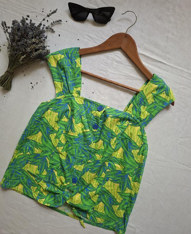 Топ на широких бретелях из льна и вискозы, размер указан 10, подойдет на m.