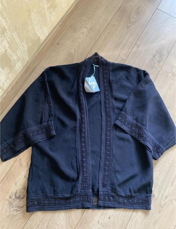 Новий кардиган , накидка , кімоно. Темно синій колір. Льон . Без нюансів . З біркою . Італія . Довжина 76 см, рукав спущений , від горловини 57 см, ПОТ 60-65 см