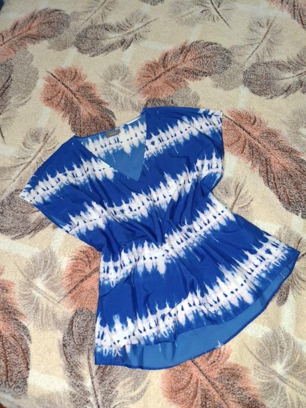 В новом состоянии. Не носила. Подойдет на размер М, Л если под грудью бунтарь как на фото или на ХЛ. Замеры: длина 60 см, подмышками 62 см полуобхват. Тканина не тягнеться. Усилия присилию от 100 грн.