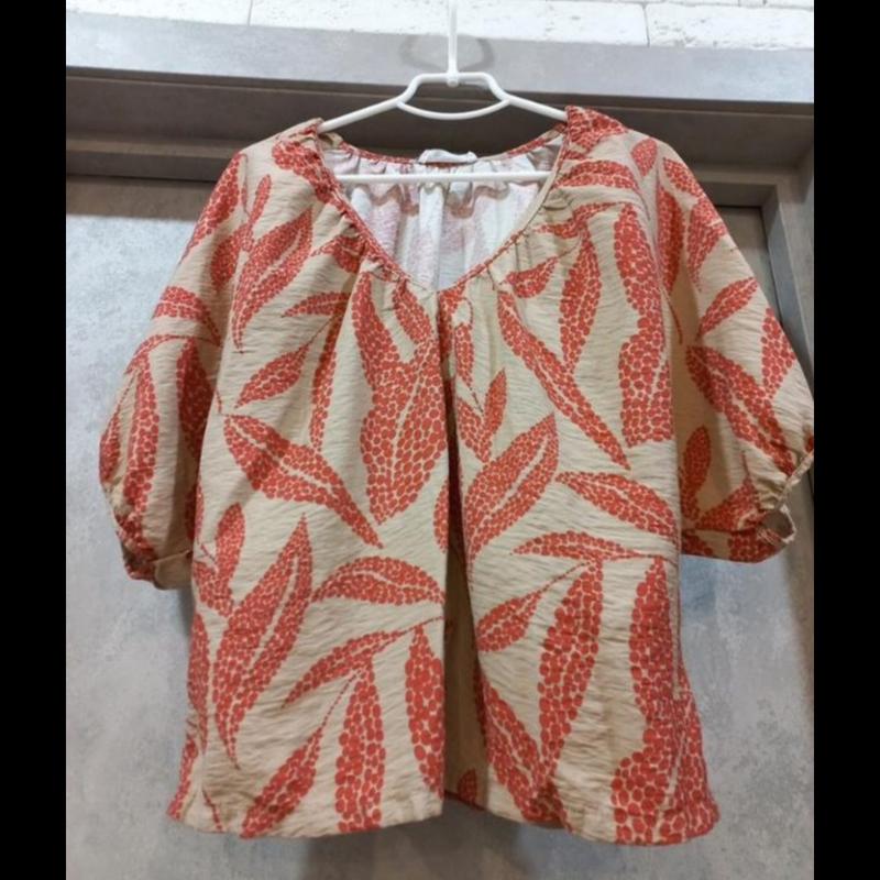 Очень красивая стильная,с широкими рукавами блузка, Состояние новой. Очень красивая и качественная вещь. 95%вискоза,5%полиамид, длина 60 в шруде 58 талия 55,5 низ 56 ширина рукава 31