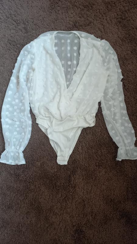 Белая блузка-боди в маленький белый объемный цветочек.Удобная Праздничная и повседневная