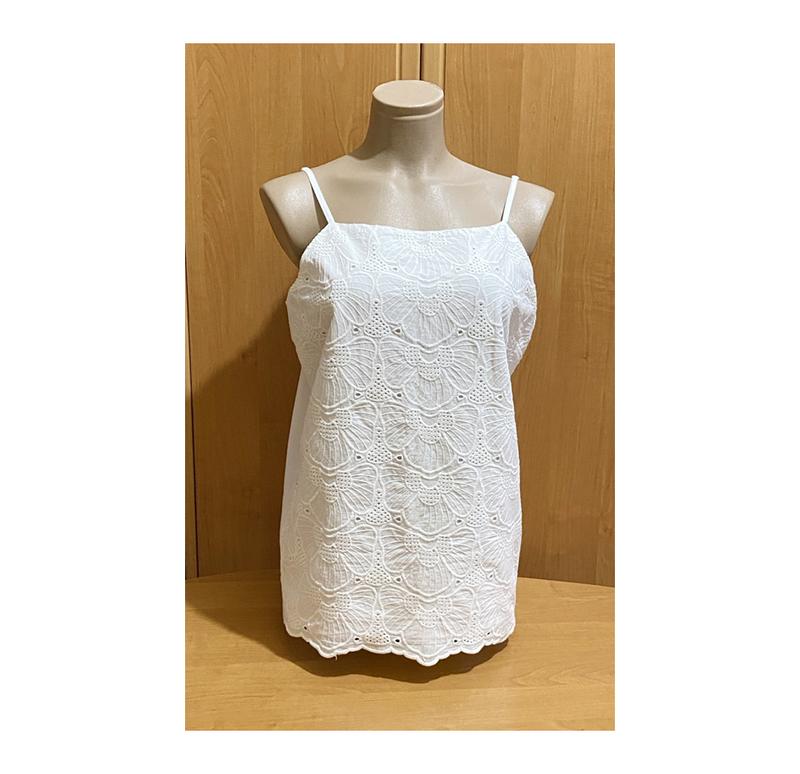 Стан идеален. Цвет: белоснежная. EUR 40-42 / L / UK 14 / наш 46-48. Натуральная. 100% бавовна. На жаркое лето. Прошва кружево спереди - подвиная ткань, сзади один тонкий слой ткани. Блузка свободна на бретелях, блуза без рукава, майка на тонких бретельках женская. --- Длина спереди 54 см, сзади 44 см, грудь ПО 51 см, низ ПО 56 см, бретели регулируются. --- Без дефектов и без нюансов! --- Безпечна оплата, Новая почта, Укрпочтта, meest, личная встреча в Киеве, налавка с подпиской за услуги почты. Возвращение принимаю в течение 2-х дней (послуги почты за счет покупателя).