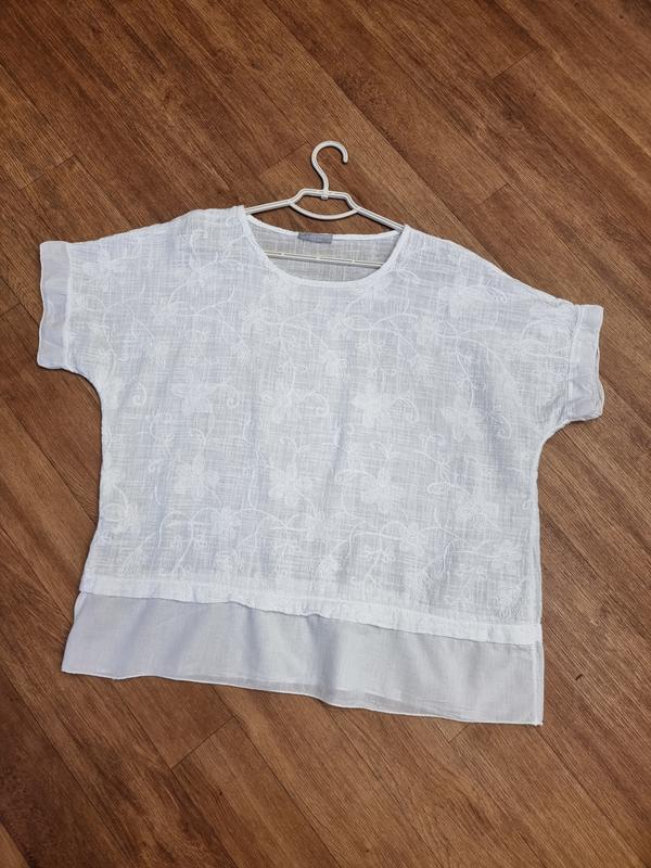 Отличная блуза, легкая, тонкая. Идеальна на жару. Сделана в Италии. Длина- 68 см пог- 65 см пот- 62 см поб- 64 см Длина рукава- 31 см от горловины; ширина рукава- 21 см