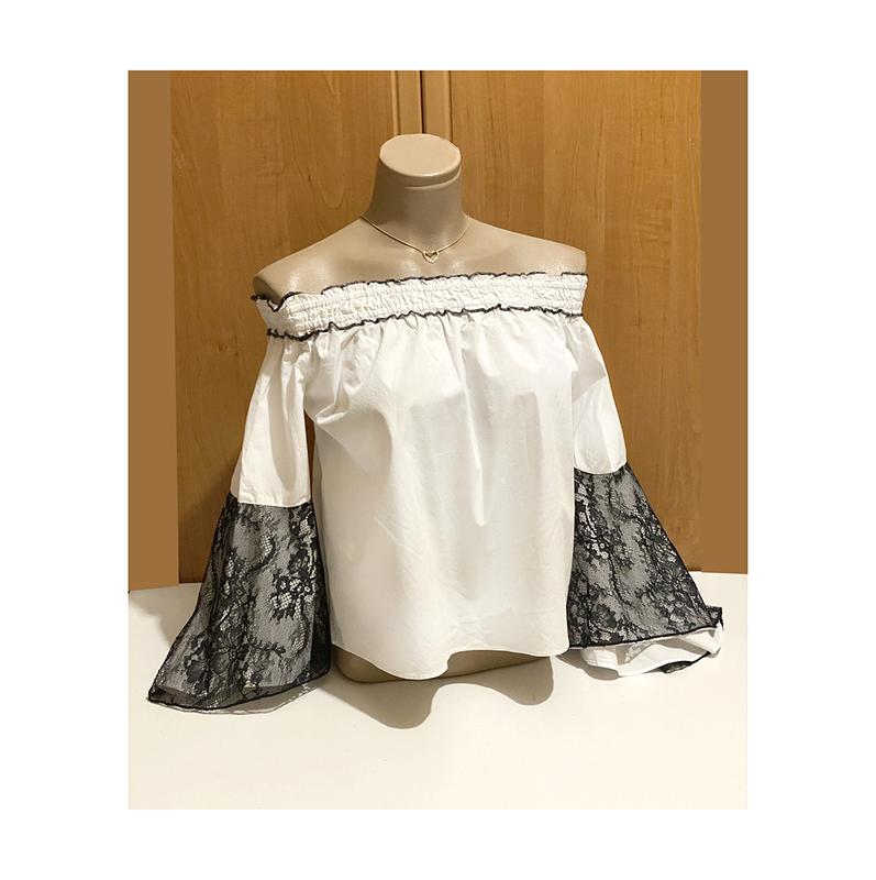S натуральный хлопок блуза свободная белая блузка резинка черное кружево широкая рукав лет...