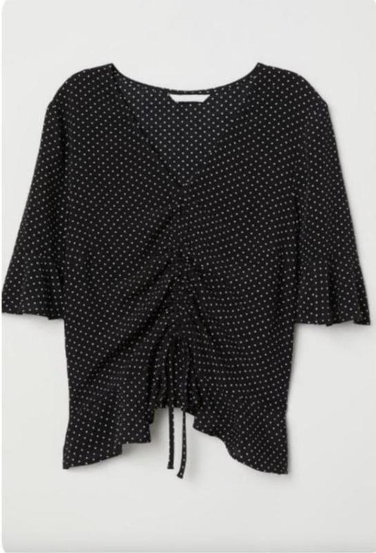 💫Очень красивая нарядная блузка в горошек с красивыми рукавами с воланами и внизу на бедрах и еще со шнуровкой 💫Замеры: Плечи-37 см ПОГ-45 см ПОТ-43 см ПОБ-42 см плюс шнуровка Длина рукава-29 см Длина-56 см