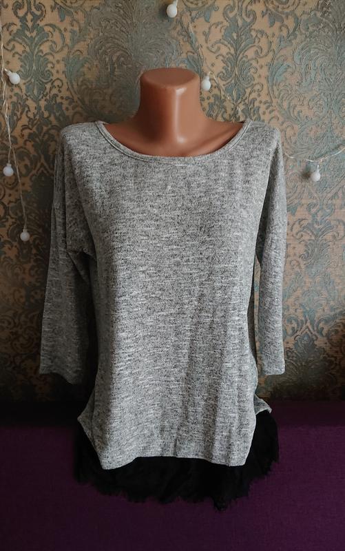 Красивая трикотажная серая блуза с кружевом, состояние идеальное не носили Размер наш 46 /48 Замеры Длина 66 Пог 52 тянется 60