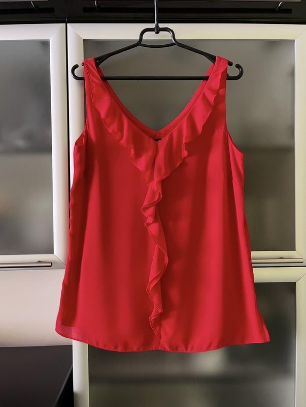 Wallis нова чудова блузка. Тканина ярко-червоного кольору, фото сочності кольору не передає. Розмір з бірки 10/38. Довжина 65 см. Напів обхват грудей 50 см. Поліестер.