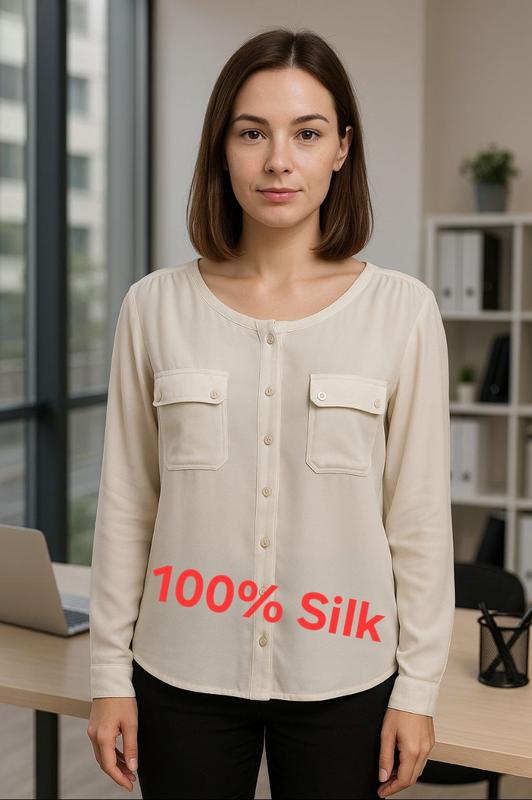 Крутая женская шёлковая блузка цвета шампань. Свободный крой. Круглый вырез. Планка, манжеты и карманы застёгиваются на перламутровые пуговицы. На груди два кармана. Состояние новой вещи, без бумажной бирки. Размер указан 42 (лучше ориентироваться по замерам) Рукав 62 см Плечи 44 см ПОГ 56 см Длина 63 см Состав: 100% Silk + запасная пуговица Доставка: рада приветствовать вас в магазине 🐼белый умка🐼👚👙🧣🧤🧥🧦👔👕👗🥼👜🥿👟👢👠🥾🛍🛍🛍 Подписывайтесь на обновления 👀👀👀👁👁👋 постоянным клиентам скидочки 🍓🍬%%%