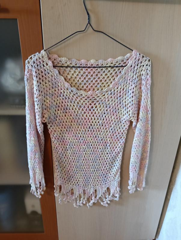 Стильная блуза ручной работы, трендового узора сетка, ПОГ-46см, длина - 61см по краю кружева.