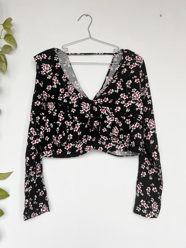 Короткий топ/блуза zara з довгим рукавом і декольте Квітковий патерн Покрій з асиметричними рюшами Розмір вказано М, але добре і на S