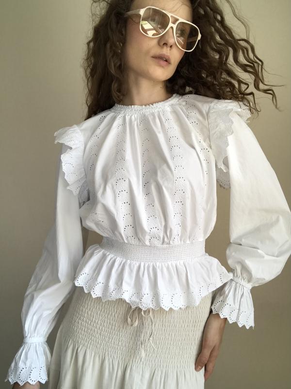 100% бавовна. легка сорочка з прошви блуза біла жіноча на літо дихаюча