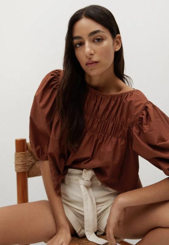 🌿коричневая блуза от Mango свободного кроя, ткань хрустящий коттон Размер:XS Замеры:ПОГ 48 см, длина 53 см