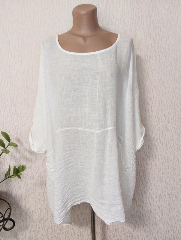 размер 56/58 оверсайз молочная льняная блуза Италия 100% льон пог и поб 105 см длина 80 см в идеале