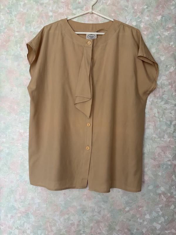 Блуза легкая, приятная к телу. На гудзиках. Замеры: полуобхват груди - 58 см, длина - 70 см. Состав: 55% вискоза, 45% полиэстер