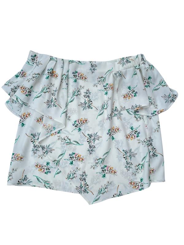Цікава кофтинка від M&S Collection в квітковий принт. Дуже цікавий крій.Можна носити на спущені плечі . На плечиках вшита широка резинка. Поліестер, Заміри: ПОГ- 49 см НИЗ-57 см Довжина- 51 см Ширина зверху -46 тягнеться резинка до 57
