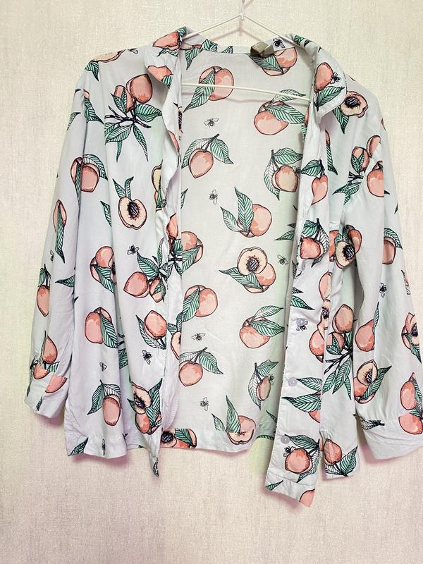 Блуза/рубашка від asos , колір ніжно-блакитний , цікавий принт, легенька,гарна якість Стан ідеальний, не носилась Розмір пише 38, підійде на с/м Рукав 3/4