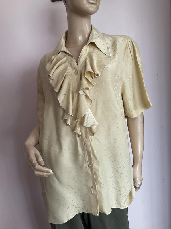 Красивая качественная блузка с решкой. Принт- горох. Без дефектов. Замеры в груди 63 см в бедрах 66 см э разрезы. Длина 68 см в плечах 49 см рукав по окружности руки 26 см 6:8:25