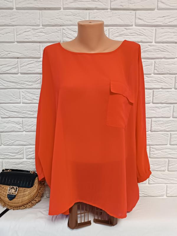 красивая блуза большой размер# находится в наличии #код #. Описание: Длина 66 см по перед, задняя часть 70 см Полуобхват груди 87 см Полуобхват талии 85см Полуобхват низ 82см Рукав от шеи 59см, бицепс полуобхват 25см Ткань не тянется, в отличном положении, приятное к телу, немного светится
