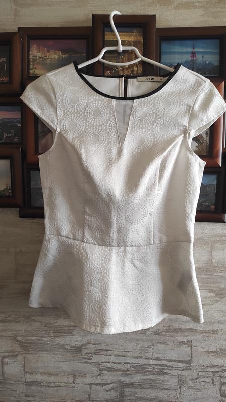 качественная белая блуза Oasis с баской размер xs-s, длина по спинке 56;см от плеча, пог 42 см, в стороны тянется, есть шкаф доставка