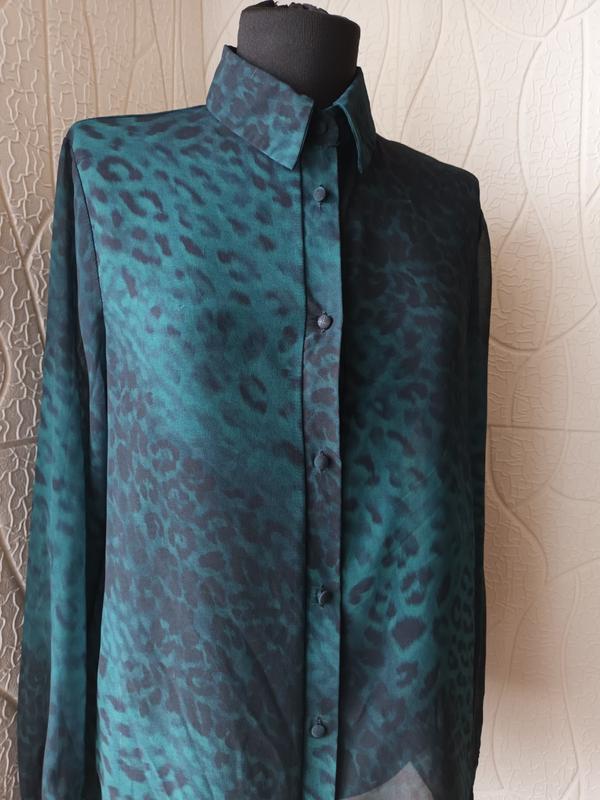 Артикул N 51 Эффектная рубашка LIPSY LONDON с леопардовым принтом. В очень хорошем состоянии. По блузке есть незначительные следы использования, на последних фото представлено. В цене всё учтено. Темно-зелёный фон с чёрными пятнами в стиле леопард делает образ выразительным и модным. ✨ Особенности: - Лёгкая, воздушная ткань с эффектом прозрачности - Классический воротник и застёжка на пуговицы - Универсальный крой, прямой свободный, низ полукруглый — отлично сочетается с джинсами, юбками и брюками - Идеальна для вечернего выхода или стильного повседневного образа. Ткань не тянется. Замеры - плечо 12.5 - длина рукава 60 - длина по боковому шву 42 - длина по спинке 67 - полуобьем по груди 50 - ширина плеч по спинке 39 Отправка новой почтой и укрпочтой при оплате на карту. Наложенного платежа нет.