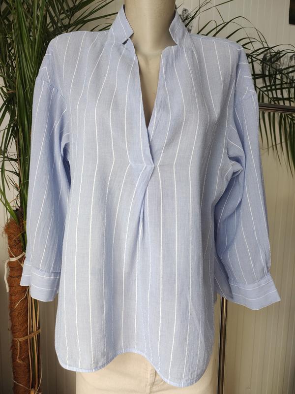 Стильная женская блуза от швейцарского бренда Lis Lareida в нежно голубом цвете в белую полоску,размер М (38).Модель с воротником стойкой и аккуратным вырезом на груди добавляет образу элегантности и современности.Вельный оверсайс кройс обеспечивает комфорт и непринужденный стиль. Изготовлена из качественной натуральной ткани приятной к телу.За деталями пишите.