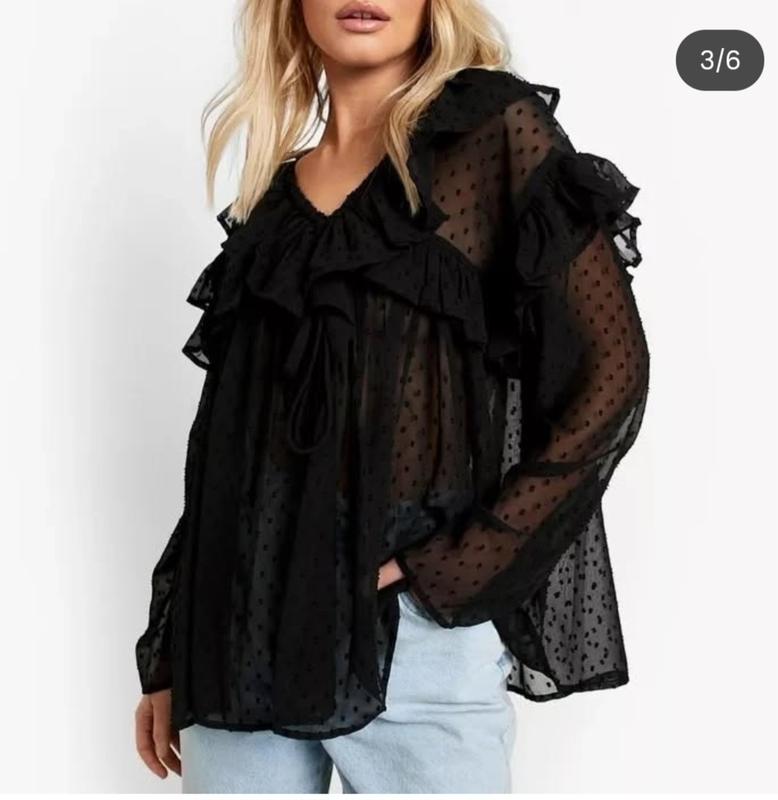 Прозрачная кофточка от Boohoo. Размер S-M. Состав: полиэстер. Замеры: ог: 46см талия и низ: свободно рукав: 3/4 46см длина: 57см