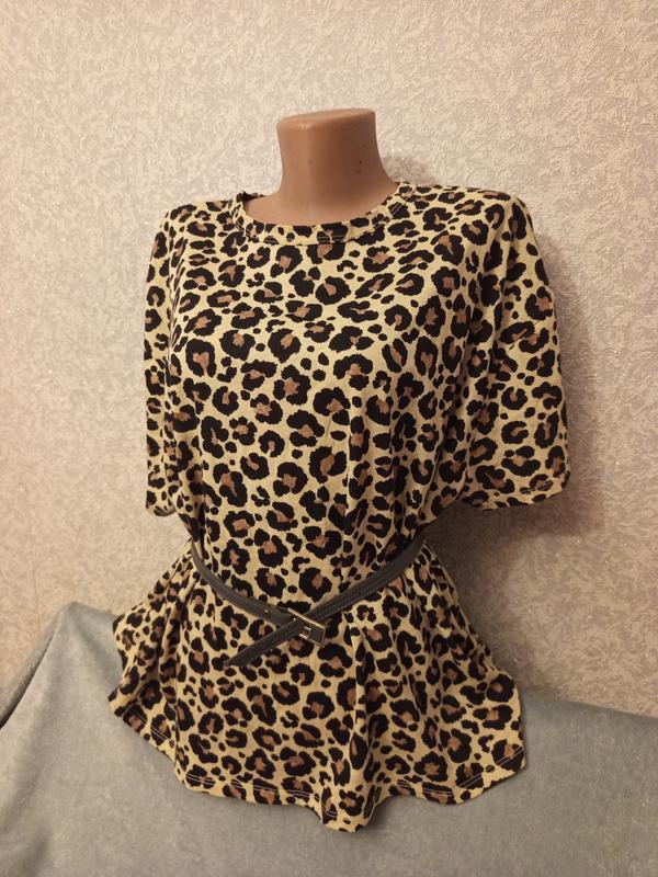 Блуза з леопардовим принтом,намкороткий рукав Пояс бонусом Довж 60 см ПОГ 60,5 см ПОТ 58 см