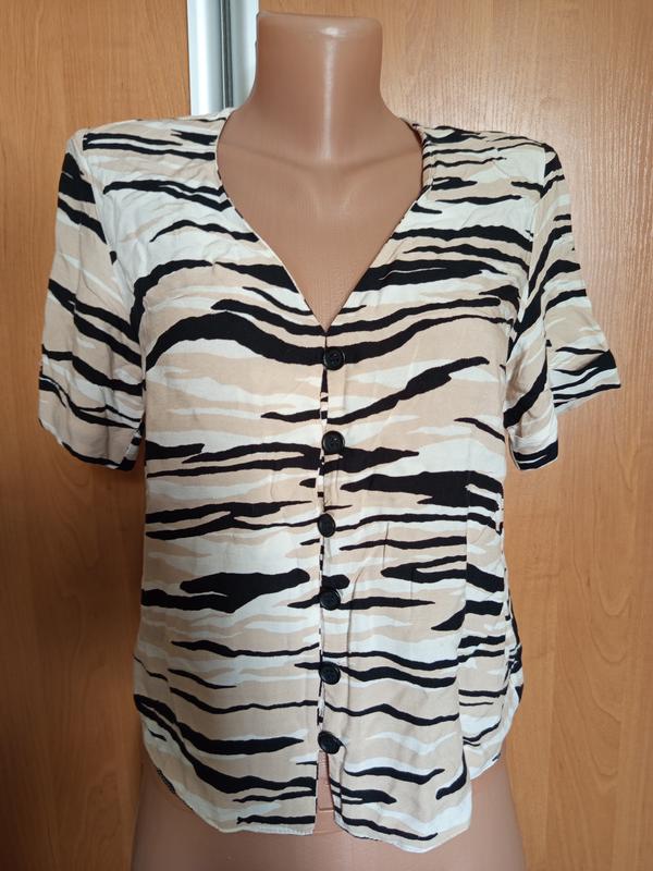 Эта очаровательная блуза с зебровым принтом от new look выполнена из хлопка. Короткие рукава придают ей стильный вид.Стан - как новый. Замеры сделают, если надо, идет на С.