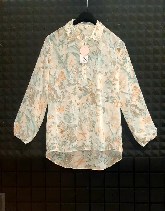 Смотрите у моей Шаффи много стильной одежды, эффектных купальников и красивого белья на пышное великолепие🥰 Возможные заказы на что-то конкретное. Смело задавайте вопрос- с удовольствием ответьте)) ❤❤❤❤❤❤❤❤❤❤❤❤ Брендовая стильная полупрозрачная блуза с эффектным цветочным принтом от Stella Мorgan Рубашка свободного кроя, оверсайз Классический воротник длинные широкие рукава, застежка на короткую молнию. Размер: 18/52-54 ЗАМІРИ: Длина -80/90см НОГ- 56см НОТ-62см НОС-68см Рукав-65см